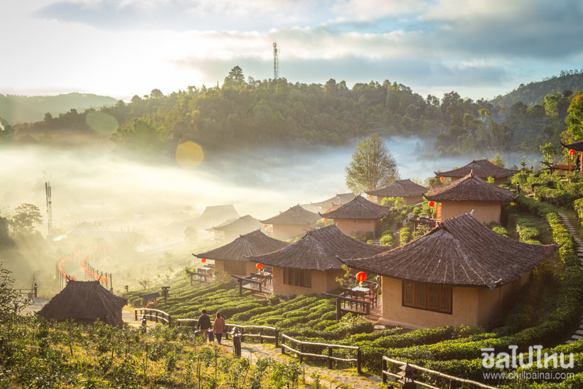 ตั้งอยู่หมู่ที่ 6 ตำบลหมอกจำแป่ อำเภอเมือง จังหวัดแม่ฮ่องสอน เป็นหมู่บ้านชาวจีนยูนนานอดีต ทหารจีนคณะชาติ (กองพล 93) “ก๊กมินตั๊ง” บ้านรักไทยอยู่สูงจากระดับน้ำทะเล กว่า 1,776 เมตร ทำให้พื้นที่ เหมาะสมอย่างยิ่งกับการปลูกชาพันธุ์ดี และพืชเมืองหนาว ทิวทัศน์ของ หมู่บ้านโอบล้อมไปด้วยทิวเขา แมกไม้ที่ อุดมสมบูรณ์ บ้านรักไทยเป็นแหล่งท่องเที่ยวที่ขึ้นชื่อในเรื่องของชาและขาหมู่หมั่นโถว คล้ายกับดอยแม่สลอง (กองพลเดียวกัน) นักท่องเที่ยวนิยมมาเที่ยวที่แห่งนี้เพื่อดื่มด่ำกับการชิมชา และ ทานขาหมูหมั่นโถว บ้างก็หลีกหนี ความวุ่นวายมาหาความเงียบสบาย ของบ้านรักไทยแห่งนี้ บ้านรักไทยยังมีกิจกรรมหลายอย่างไว้ให้นักท่องเที่ยว ได้สนุกสนาน เช่น การเดินป่าศึกษาเส้นทางโดยมัคคุเทศน์น้อย พาเข้าไปชม “คุกดิน” และการขี่ม้าพาข้ามแดนไป ฝั่งพม่า ที่บ้านรักไทยยังมีเกสถ์เฮาส์ริมน้ำ (บ้านดิน) ไว้บริการนักท่องเที่ยวที่ต้องกับสัมผัสกับ ธรรมชาติแบบใกล้ ชิดอีกด้วย